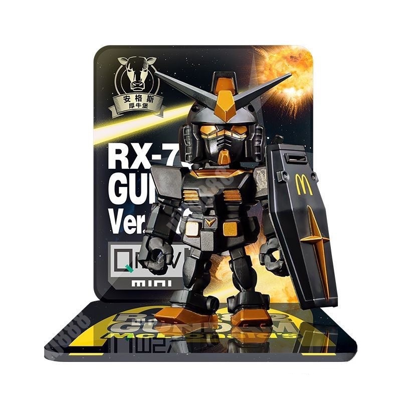 RX-78-2 Gundam Ver.Angus Qmsv Mini CO-BRAND McDonald's Black Gold Bandai Ação Figura Modelo Presente