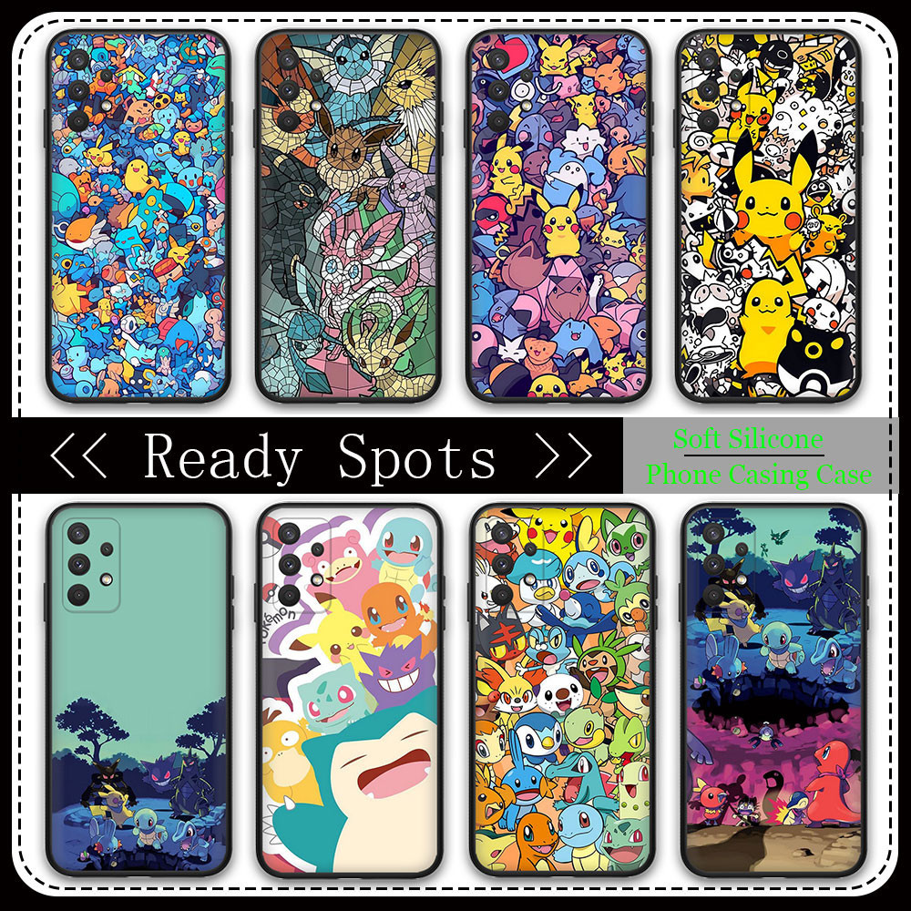 Capa Protetora De Telefone Samsung Galaxy A15 A14 A13 A12 M12 A11 A70 A50 A50S A30S A21 TPU Macia Preta 965B Pokémon