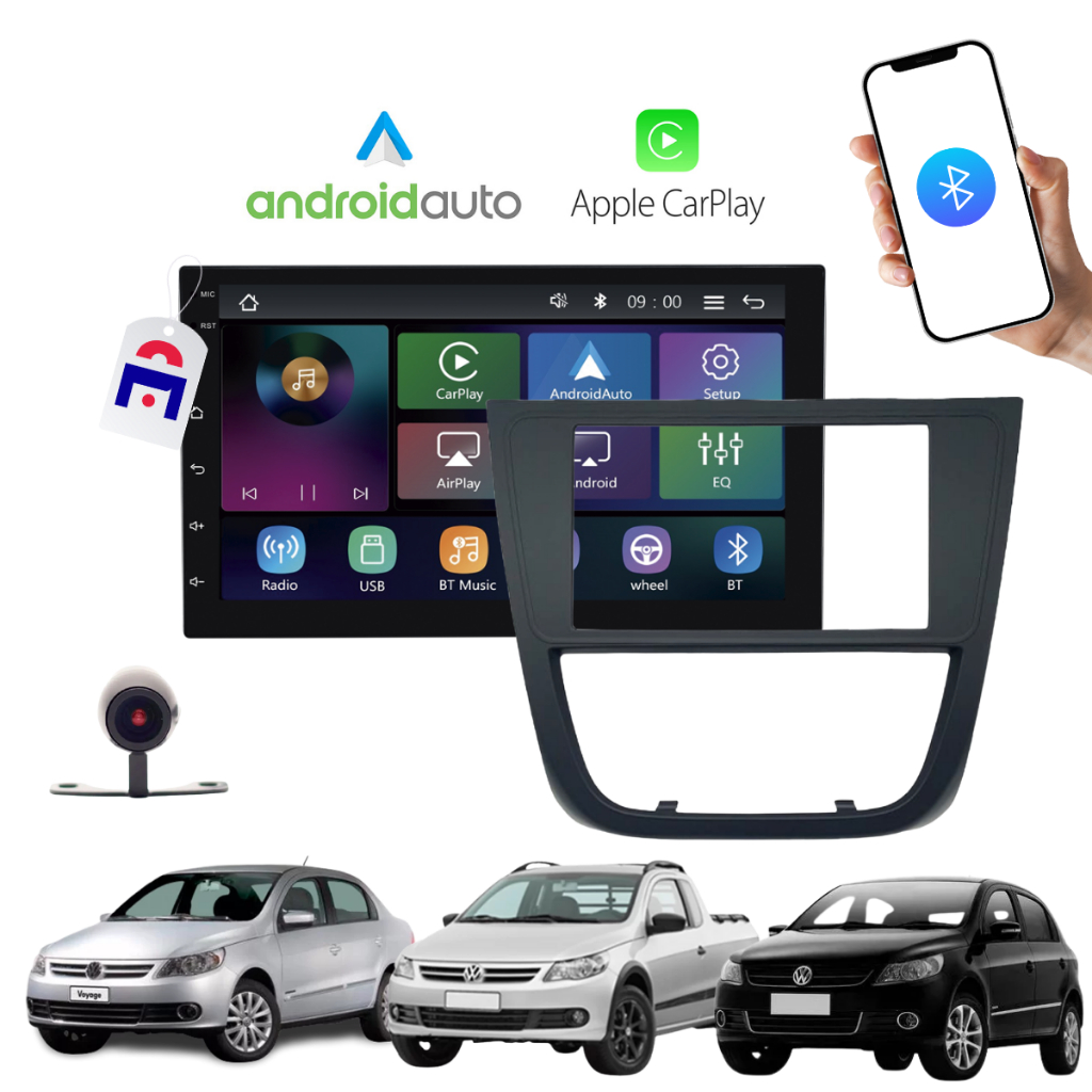 Kit Central Multimídia VW GOL/ SAVEIRO/ VOYAGE G5 2 Din 7 Polegadas Carplay Android Auto Sem Fio + Câmera de Ré