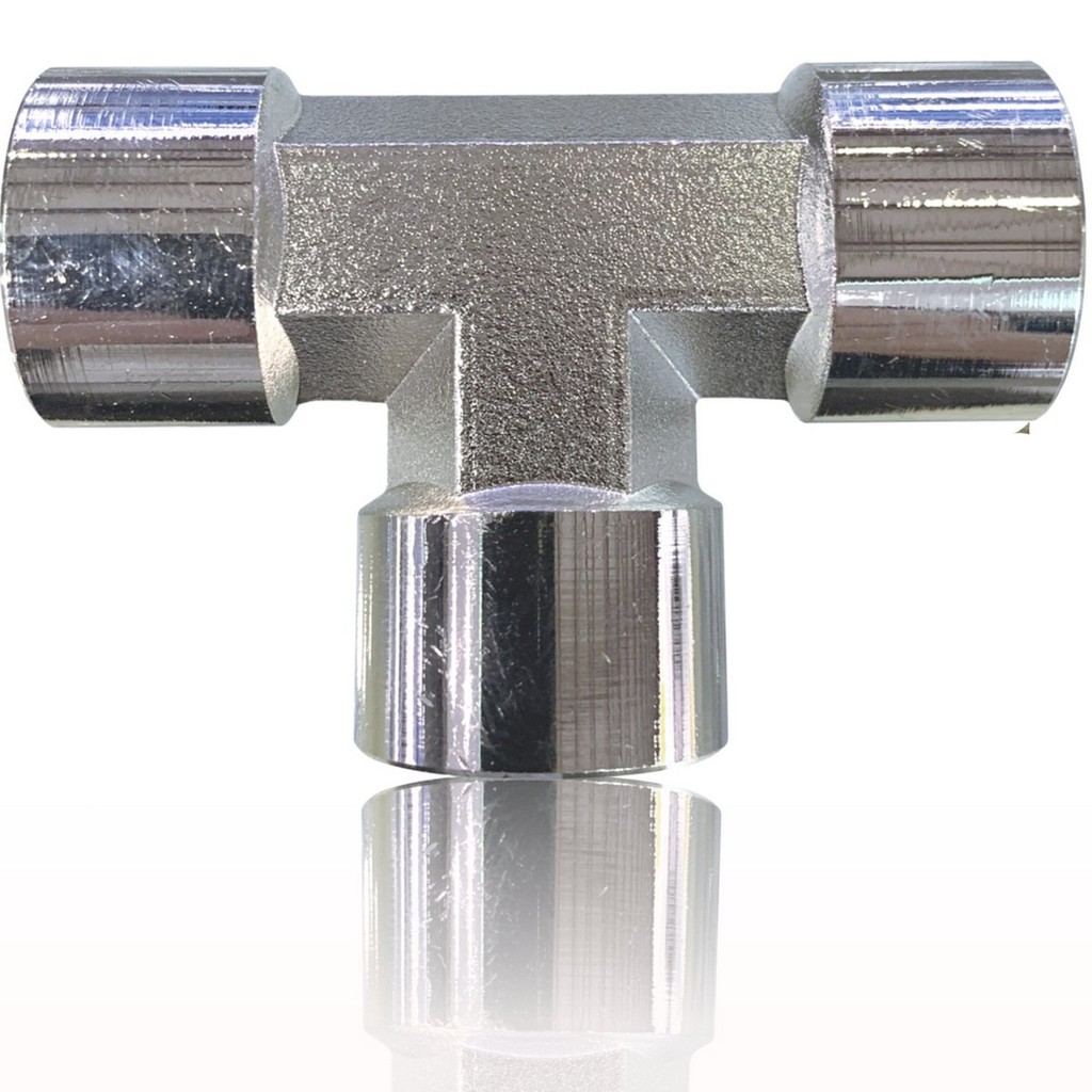 1 PEÇA - Conexão Tee Fêmea em Latão NIQUELADO Rosca BSP - PRESSAO DE 0 a 10 BAR - 145 PSI