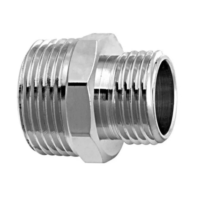 1 PEÇA - Niple DUPLO igual - Metal Cromado rosca BSP