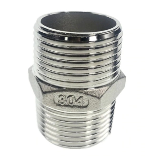 1 PEÇA - Niple Duplo Em Aço Inox 304 Rosca Bsp