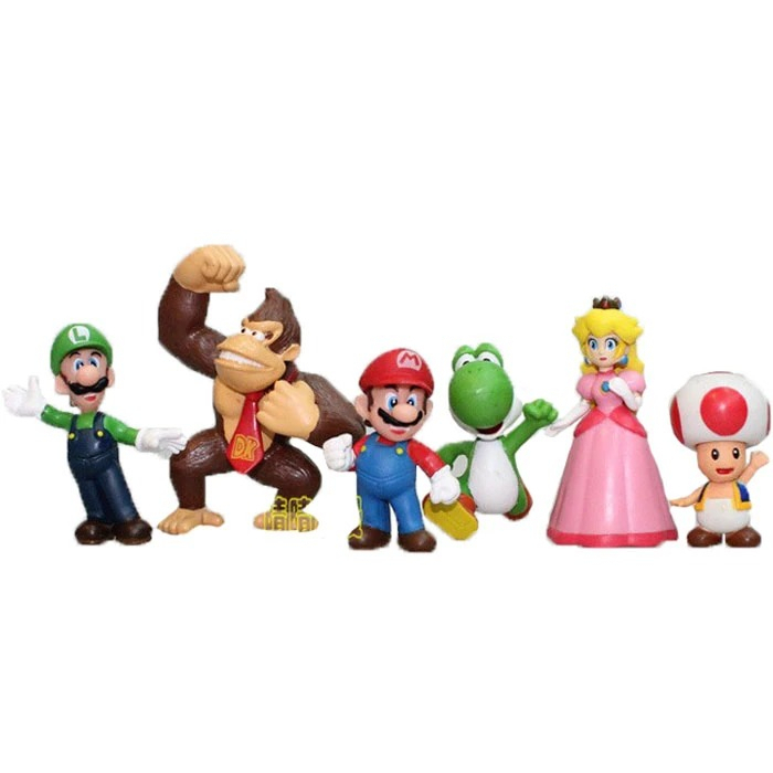Kit com 6 Bonecos Super Mario Bros em PVC - Infantil Filme Desenho Animado Jogo Crianças Brinquedo