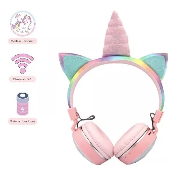 Fone De Ouvido Headset Bluetooth Unicórnio Com Led Rbg - QIU