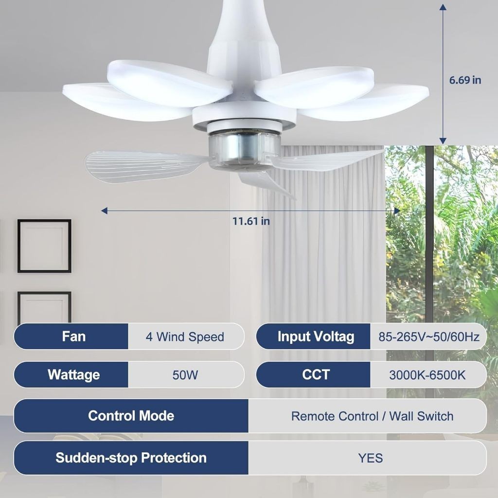 Qiu - Ventilador de Teto Com Led e Controle Remoto Regulável 4 Velocidades Ventoinhas Silenciosas