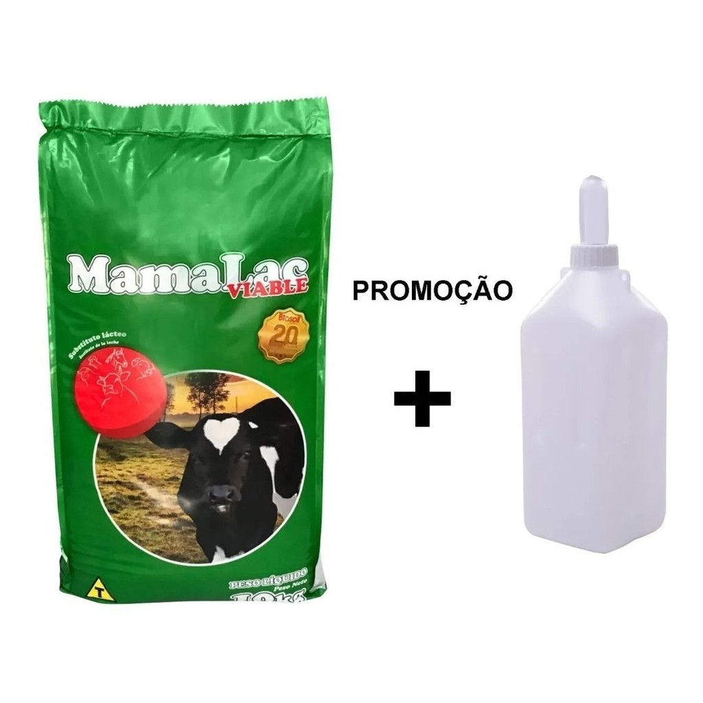 Leite Em Pó Para Bezerros Mamalac 10kg e Mamadeira Para bezerros 2L