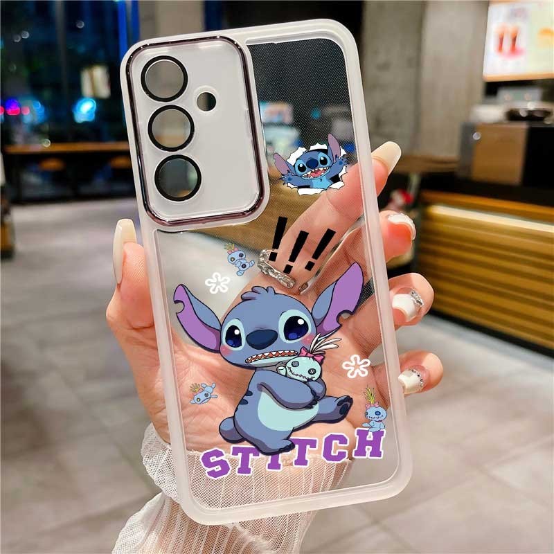 Samsung Galaxy A55 A35 A25 A15 5G M35 A05 A05s Capa Joyful Cute Stitch Caixa De Borracha Flexível Para Telefone Com Estrutura Fosca Transparente De Silicone