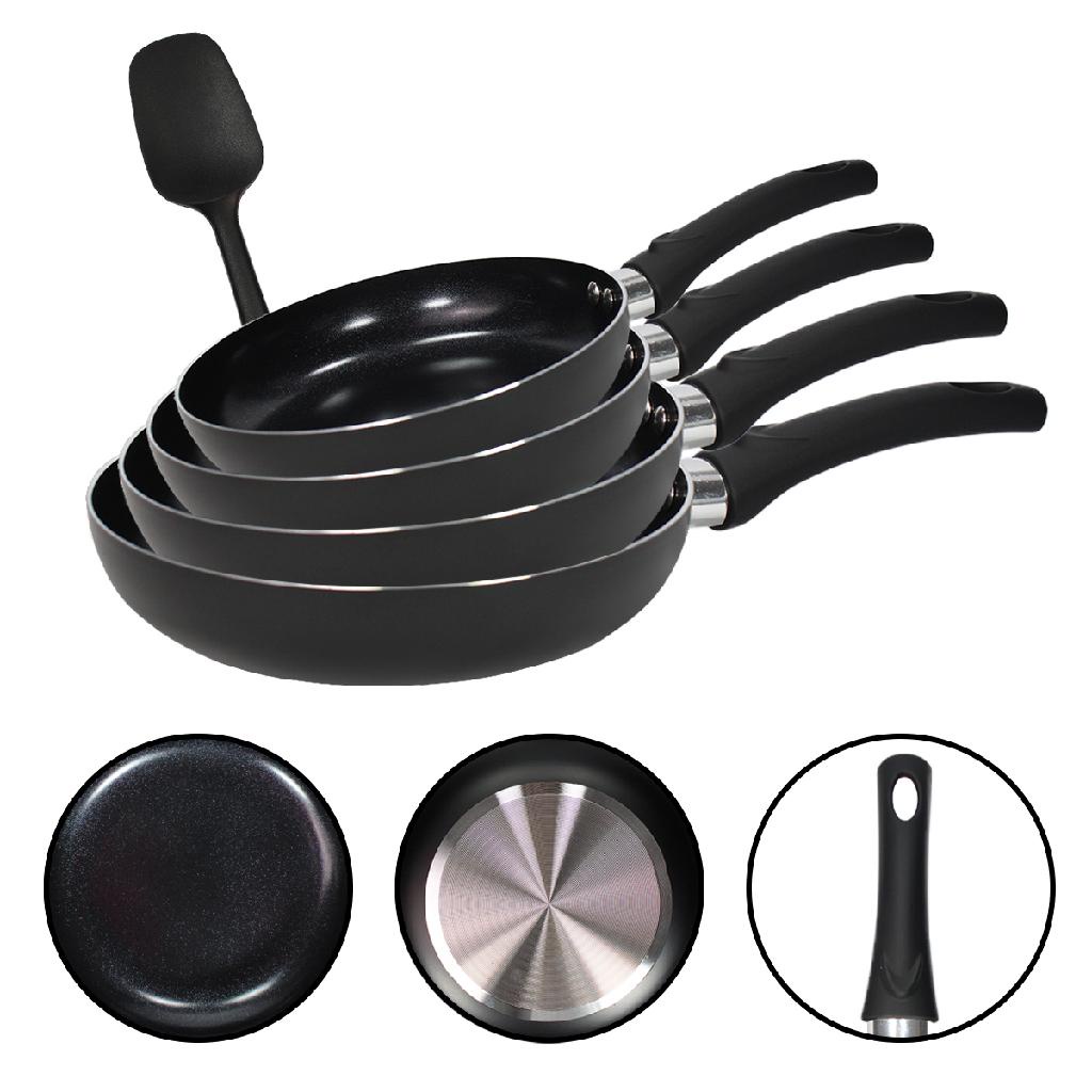 Jogo de 4 Frigideiras 24cm Esmaltada Em Cerâmica Preta Com Espátula