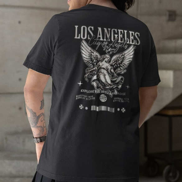 Camiseta Masculino e Feminino Estampada Los Angeles Angel Blusa 100% Algodão Moda Streetwear