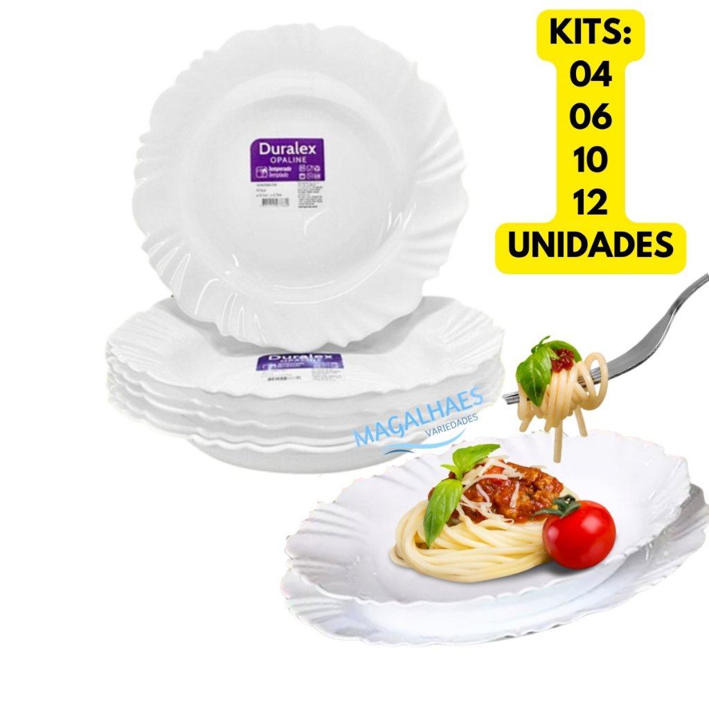 Jogo Kit 4/6/12 Pratos Fundo Menu Branco Vidro Opaline Jogo Jantar Duralex Redondo Conjunto Resistente Nadir Figueiredo Borda Ondulada Cozinha Porcelana Fundo Formato Almoço Platos