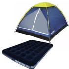 Kit Barraca Camping 3 Pessoas + Colchão Inflável de Casal Bomba Embutida Camping Praia Mor