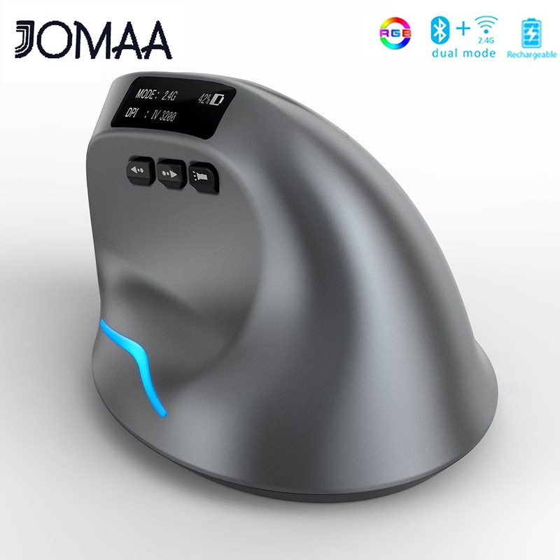 jomaa 2.4G + Bluetooth Mouse Vertical Com Tela OLED 3200DPI RGB Para Jogos Ergonômico Sem Fio Recarregável Computador