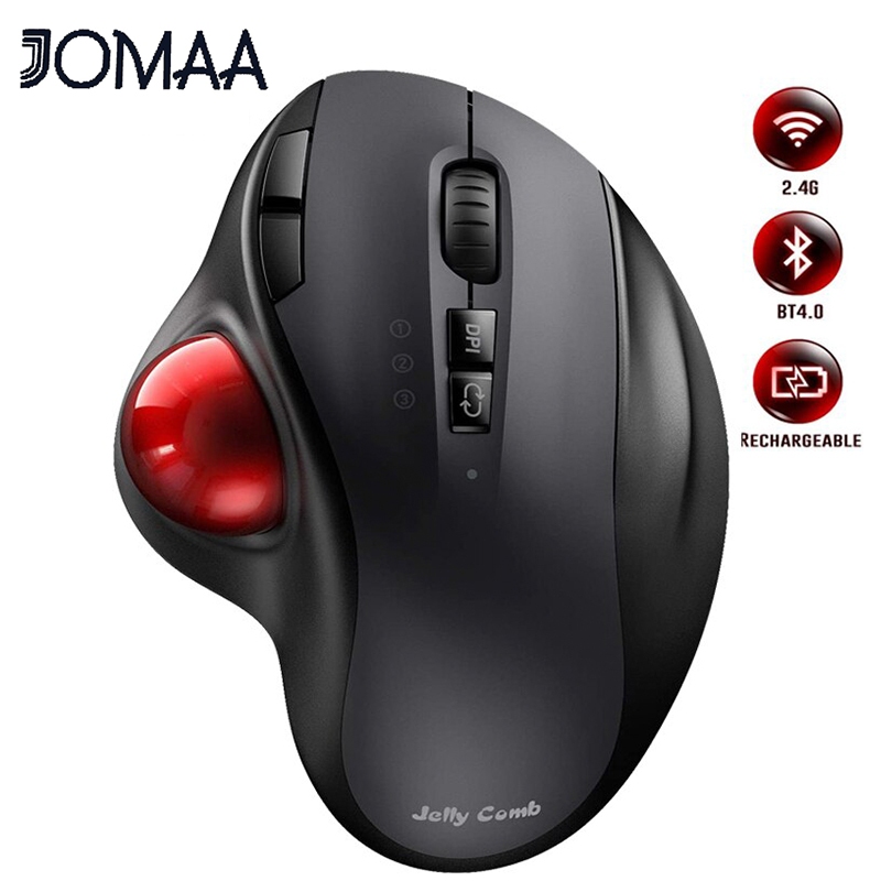 Rato Jomaa Bluetooth Trackball Mouse Recarregável 2.4G USB Sem Fio E Ergonômico Para PC Portátil Tablet Android