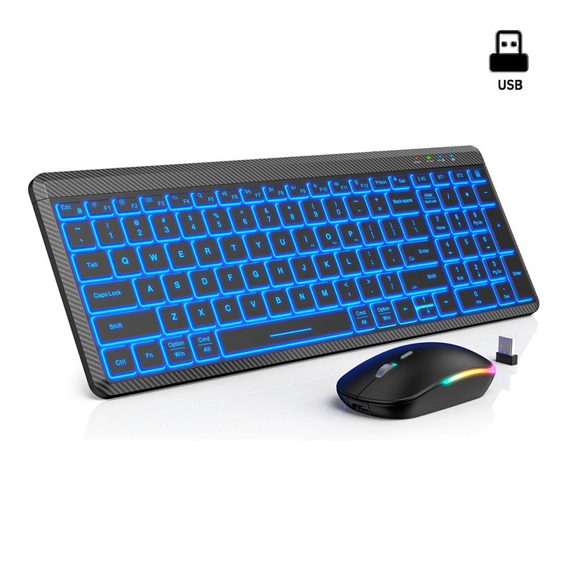 JOMAA 2.4G Teclado Sem Fio E Mouse Combo Com Luz De Fundo , Bluetooth Multi-Dispositivo Recarregável Portátil Numérico