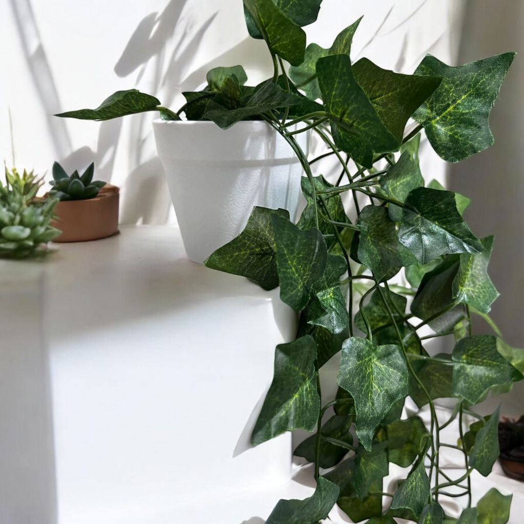 Combo 2 Kits: Planta Decorativa + Vaso Branco Liso com Hera Artificial 1 Pendente