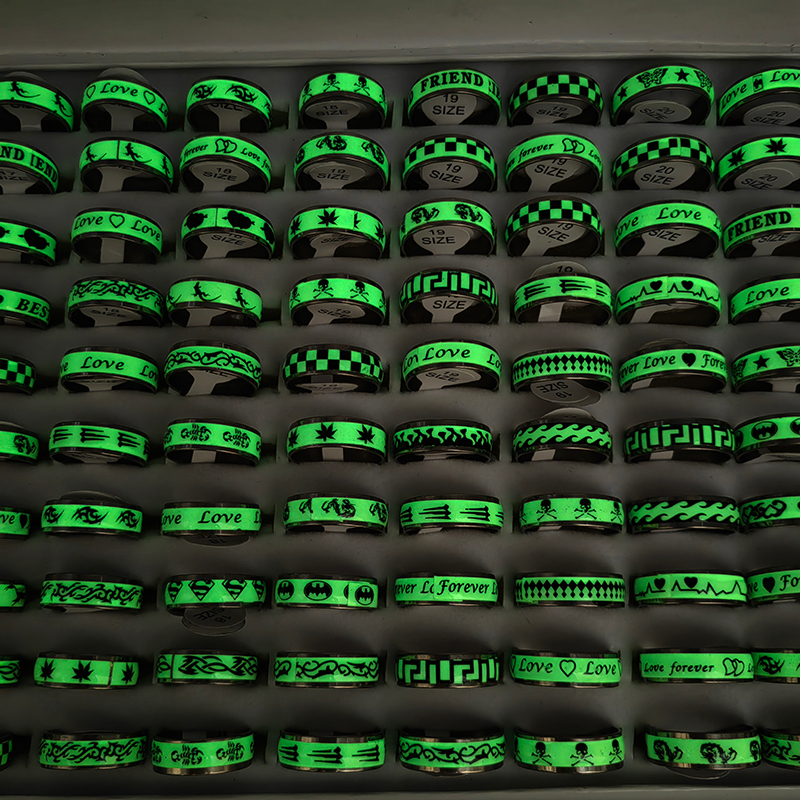 20pcs/Lot Atacadista Noctilucent Bright in Night Anéis De Dedo De Aço Inoxidável Para Homens Mulheres Novo Anel De Festa Glow Joint Ring Bar Jewelry