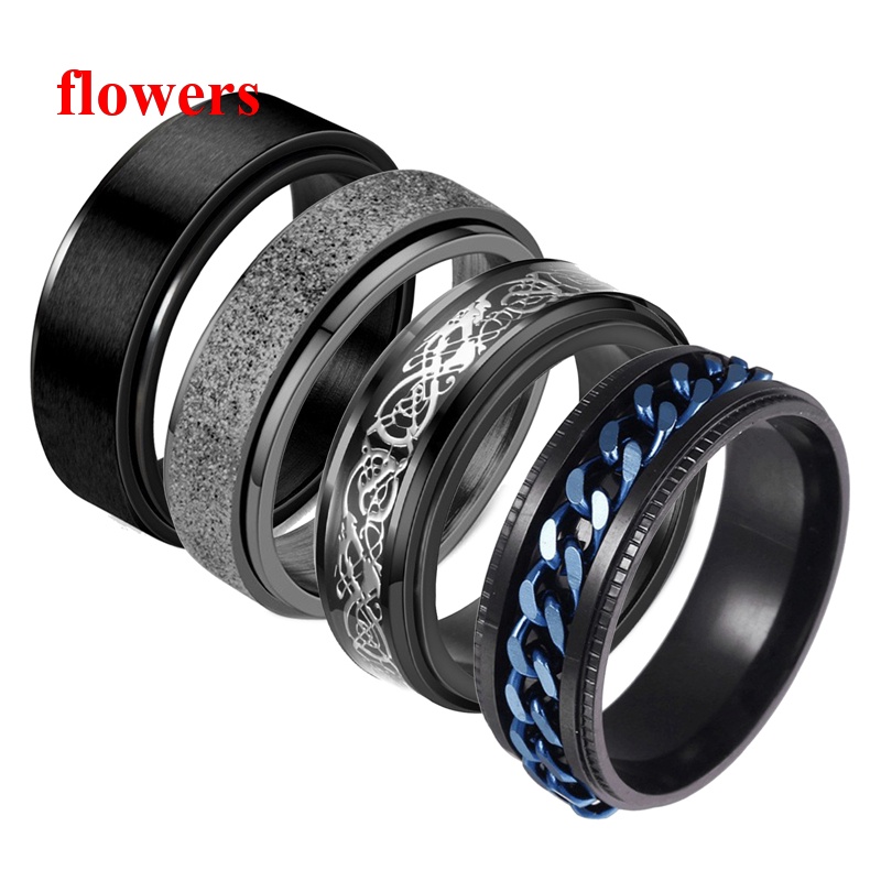 Flores Anel De Ansiedade Anéis Giratórios Para Mulheres Homens Preto De Aço Inoxidável Rodar Livremente Acessórios Anti-Tensão Jóias