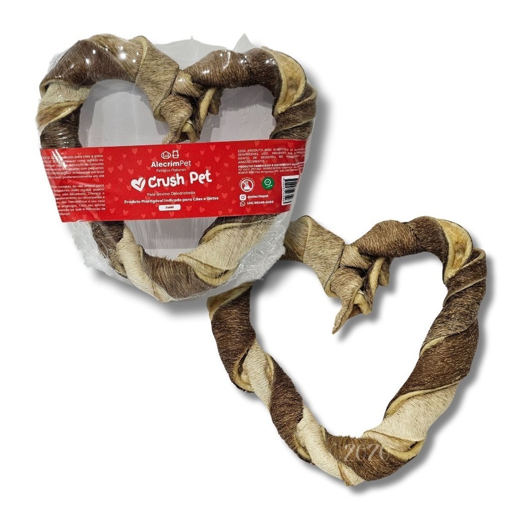 Pele Bovina Desidratada Coração Mordedor 100% Natural Para Cães 100g Crush Pet AlecrimPet