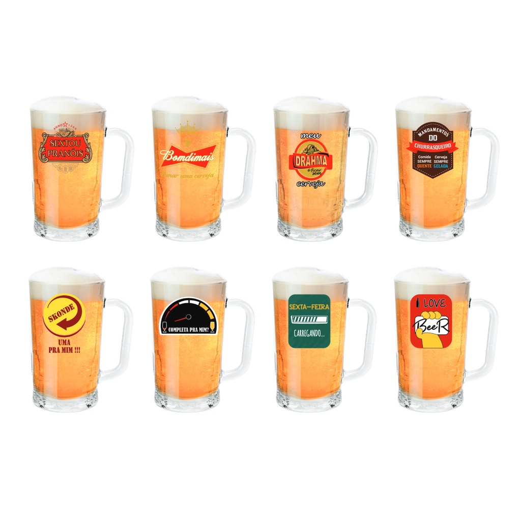 Caneca De Chopp Vidro 330 Ml Copo Cerveja 8 Temas Divertidos