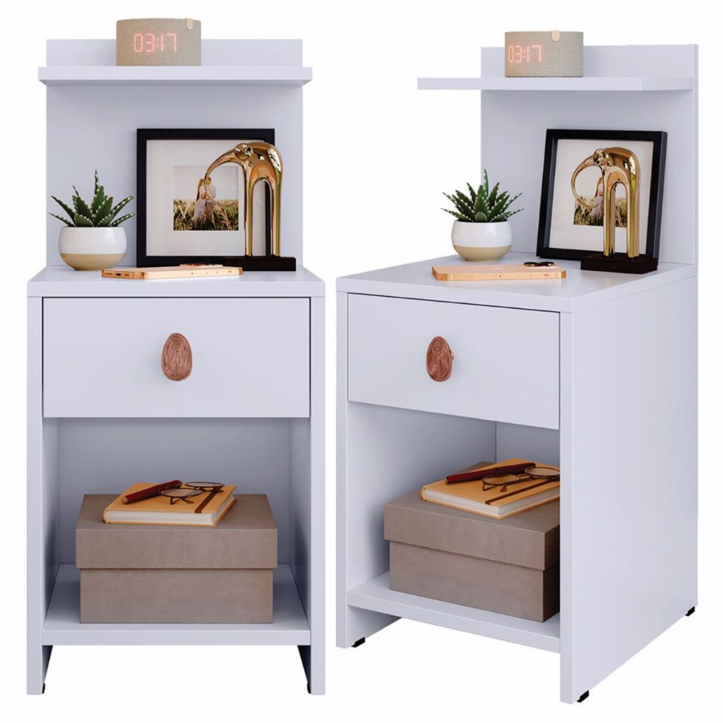Kit com 2 Un Mesa de Cabeceira retrô 1 gaveta e prateleira Nicho com puxador Boss