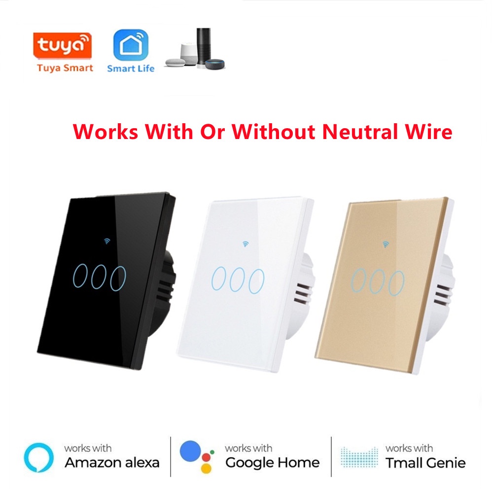 Tuya WIFI Interruptor Inteligente De Toque Sem Fio Neutro E Requerido Smart Home Life De Luz De Parede 1234 Suporte De Gangue Alexa Google Voice Control