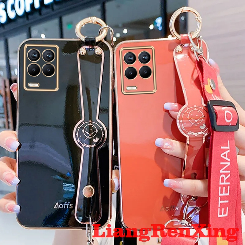 Capinha Caixa realme 8 pro 4g REALME 8 5g Telefônica Softcase silicone Galvanizado À Prova De Choque Capa Protetora De Novo design Alças De Pulseira Lanyard Para Meninas WDXGS01 CAPA