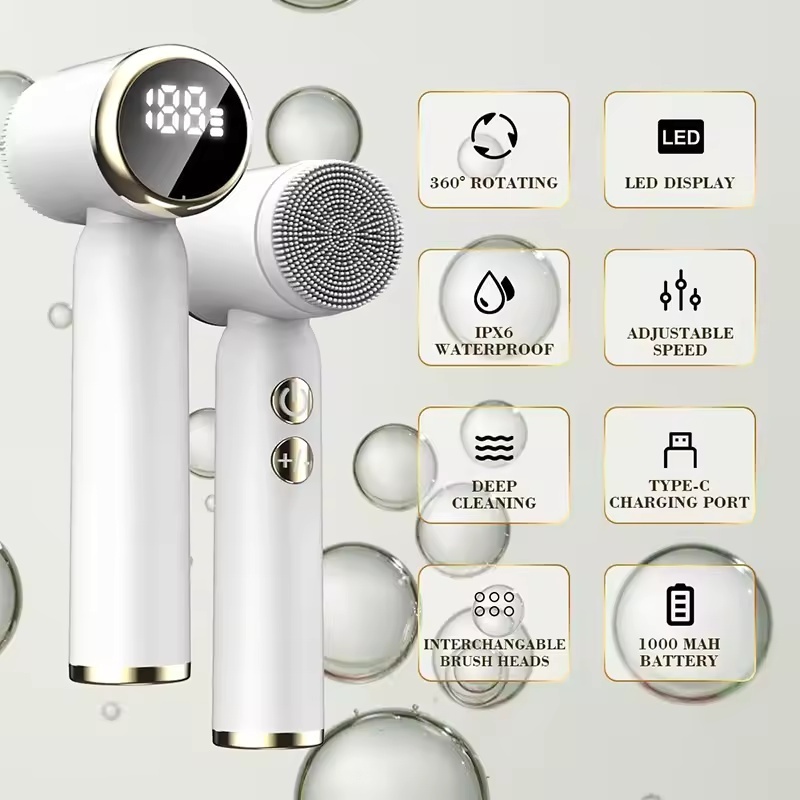 Escova De Limpeza Elétrica De silicone 6 Em 1 Portátil , Facial De Poros E Esfoliante , Sônica À Prova D'água