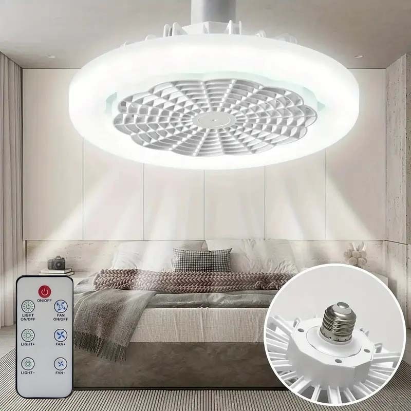 Kit 4 Ventilador de Teto com LED Lâmpada E27 Controle Remoto Luminária Economica de Energia Bivolt