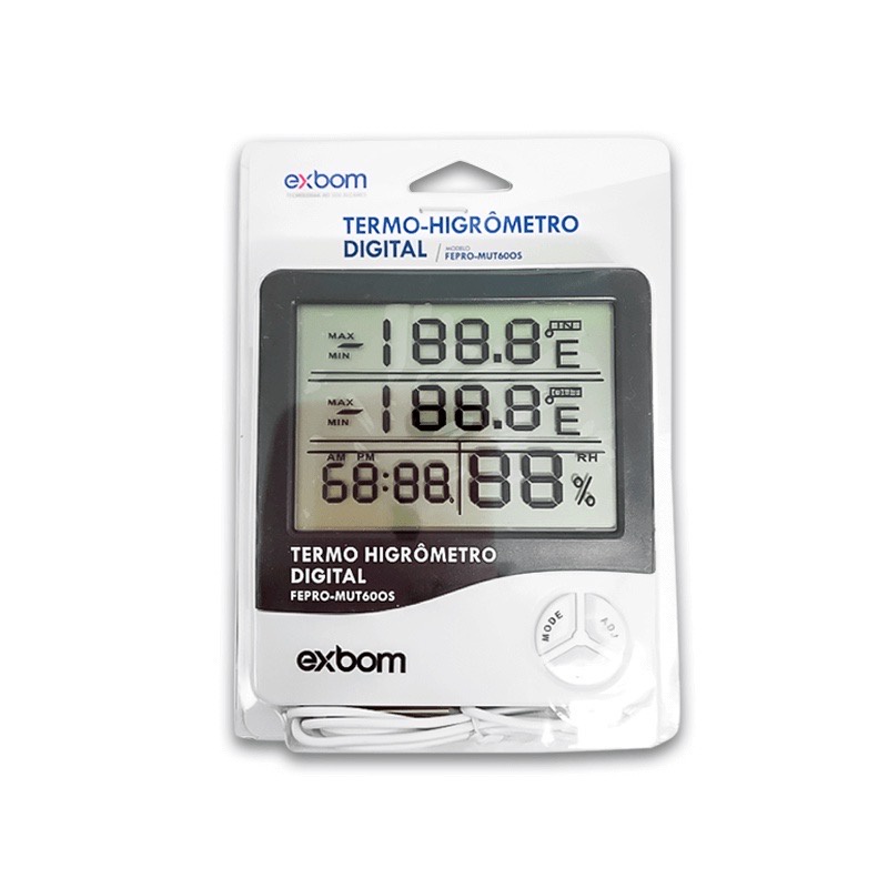 Termo-Higrômetro digital para medição de umidade e temperatura LCD FEPRO-MUT60OS com Sensor Externo