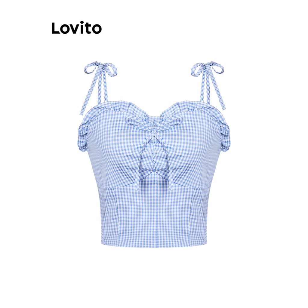 Lovito Regata feminina Boho com babados lisos e bainha L95ED838
