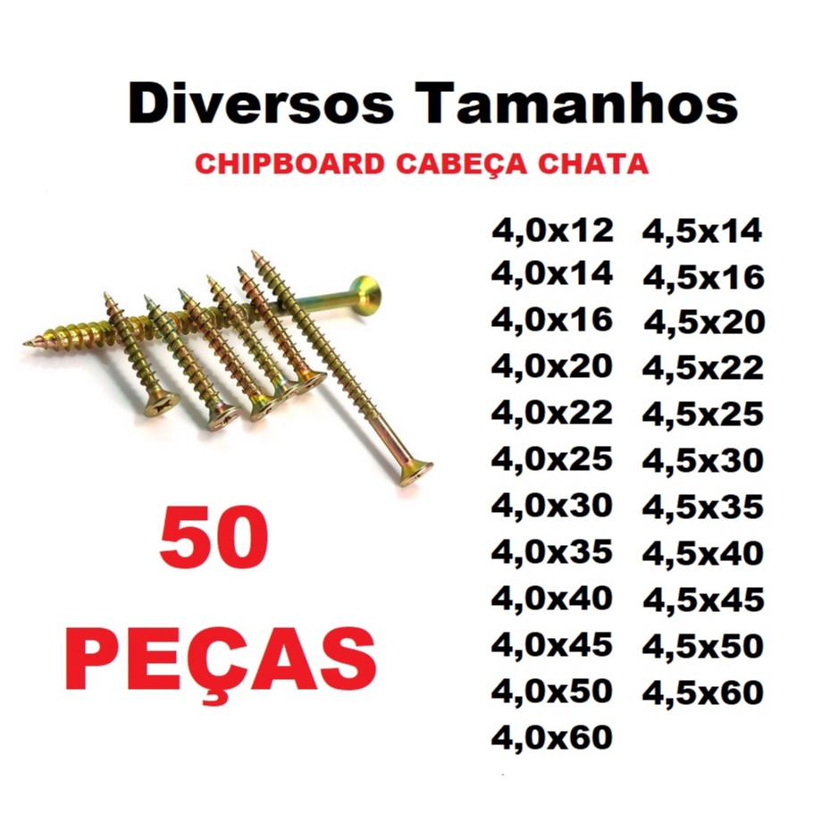 Parafuso Chipboard 4.0 mm 4.5 mm para Madeira Cabeça Chata Philips - 50 PEÇAS