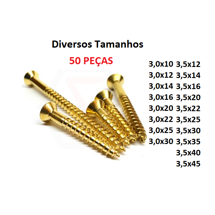 Parafuso Chipboard 3.0 mm e 3.5 mm para Madeira Cabeça Chata Philips - 50 PEÇAS