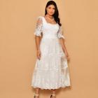 Vestido longo feminino tricoline bordado de Lese manga princesa bufante Luxo Festa Casamento