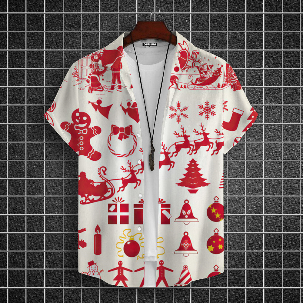 Festa De Natal Ano Novo Camisa De Manga Curta Masculina Casual Hip Hop Rua Tamanho Grande Solto Respirável MasculinoTopo