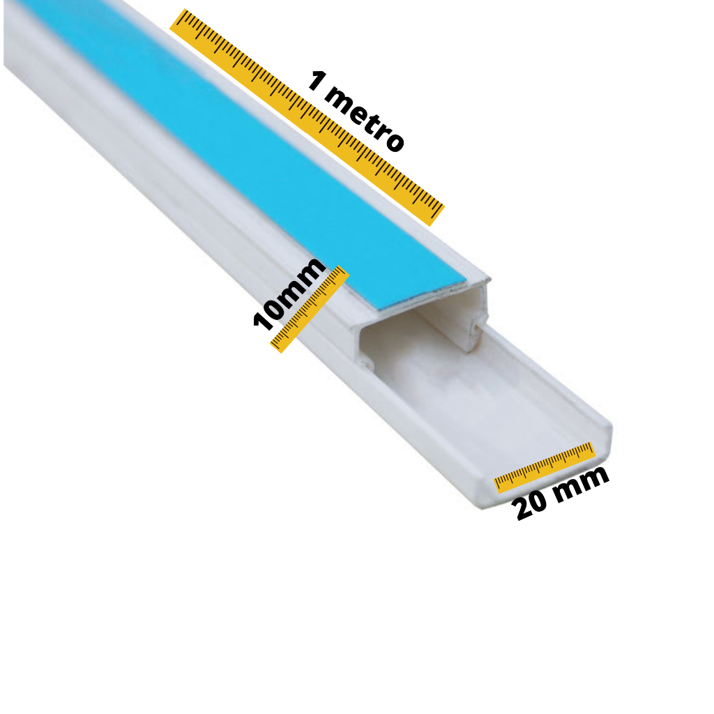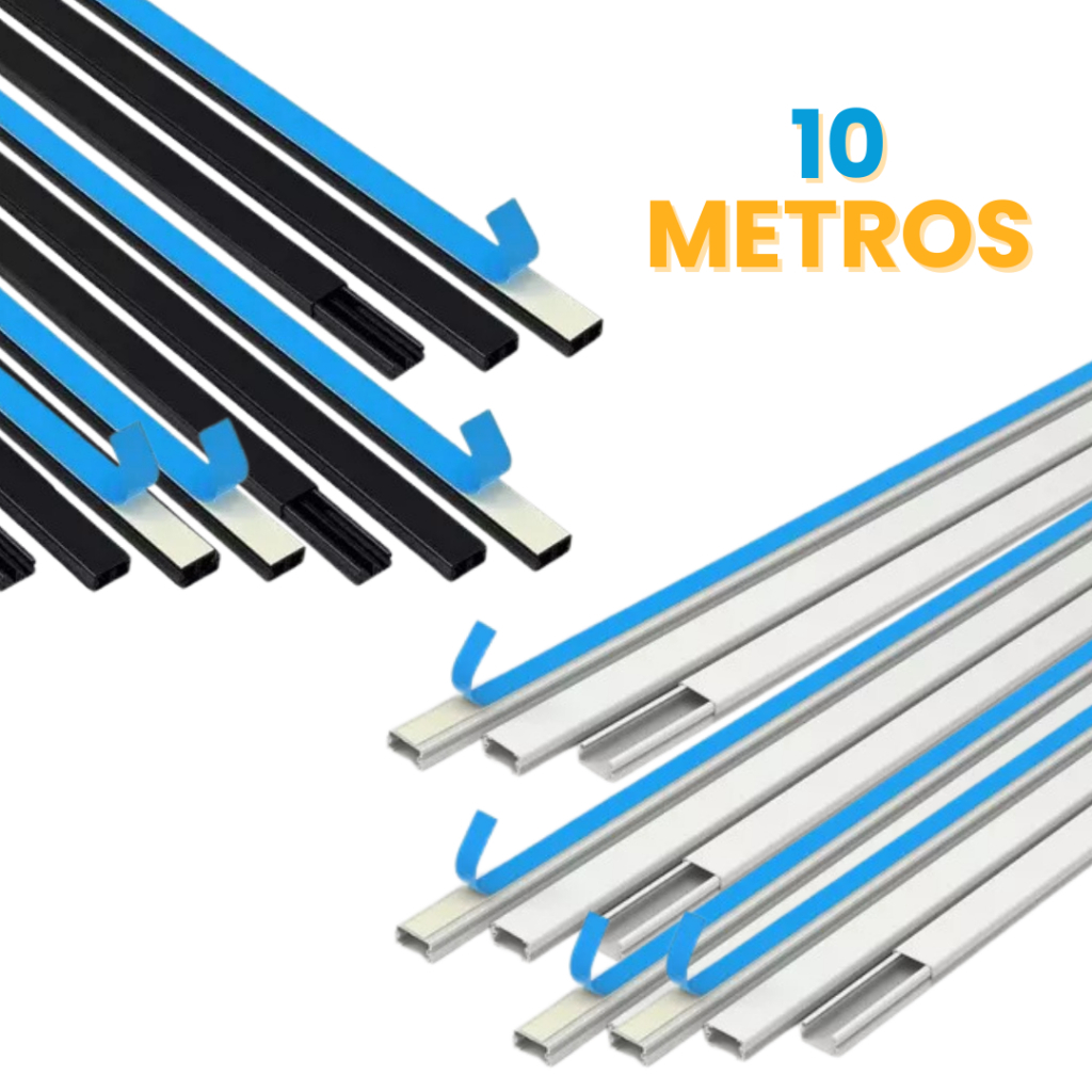 10 Metros Canaleta Organizador de Fios Preta Branca 20x10mm Sistema X Com Fita Adesiva e Divisoria