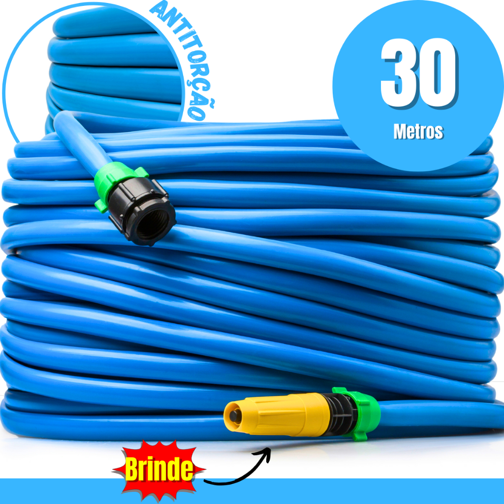 Mangueira Jardim Anti Torção Azul Super Flexível 10, 15, 20, 25 e 30 Metros Flat Com Esguicho E Adaptador