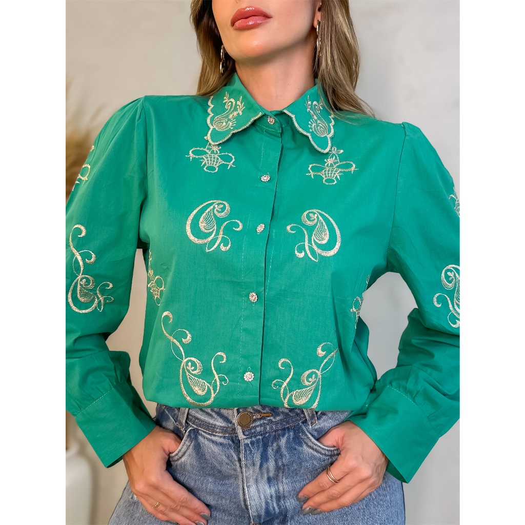 Camisa Feminina Social Manga Bufante Longa Lisa Moda 3RD SD910