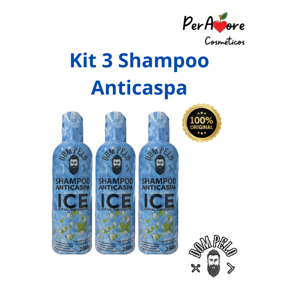 Kit Tratamento Anticaspa Shampoo ICE Dom Pelo 3x240ml