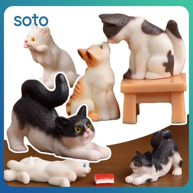 SOTO Gatos Bonitos Ornamento Gatinho Estatueta Modelo Animal Micro Paisagem Decoração De Mesa Em Miniatura Decoração De Jardim De Fadas Presente