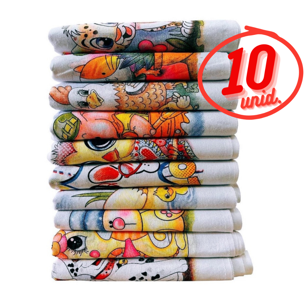 kit 10 Pano De Prato Atacado Estampado Bainha Com 10 Peças