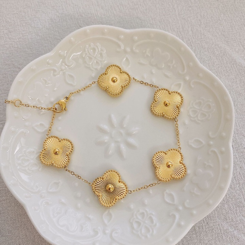 Exquisito Colar De Pingente De Trevo De Quatro Folhas De Alta Qualidade Cinco Com Pulseira De Ouro 18K Preservação Da Cor Jóias Design Minimalista