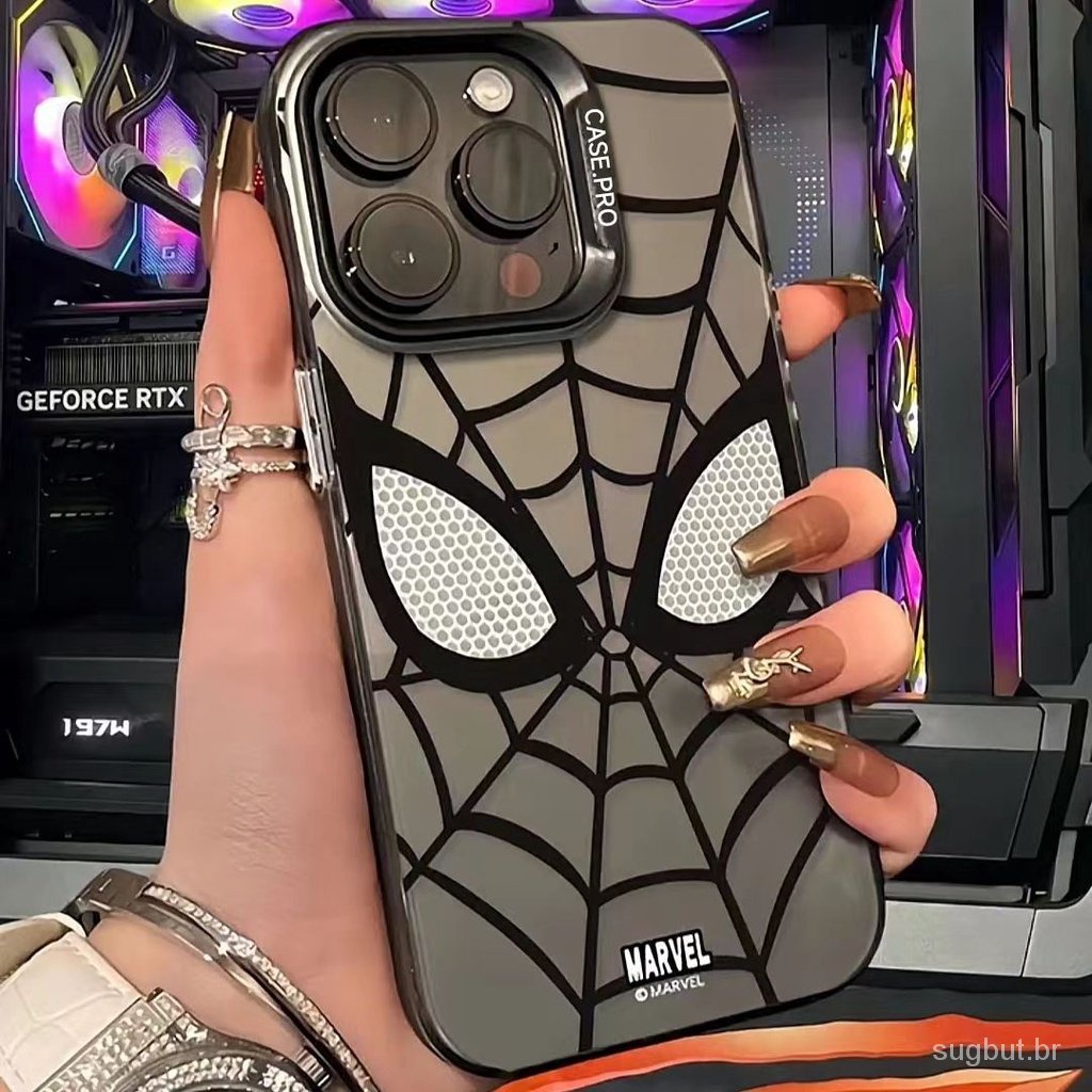 Botão de Metal frio do Homem-Aranha Apple 15promax Caixa do telefone iPhone14pro12 /11 Frosted 15 Trendy