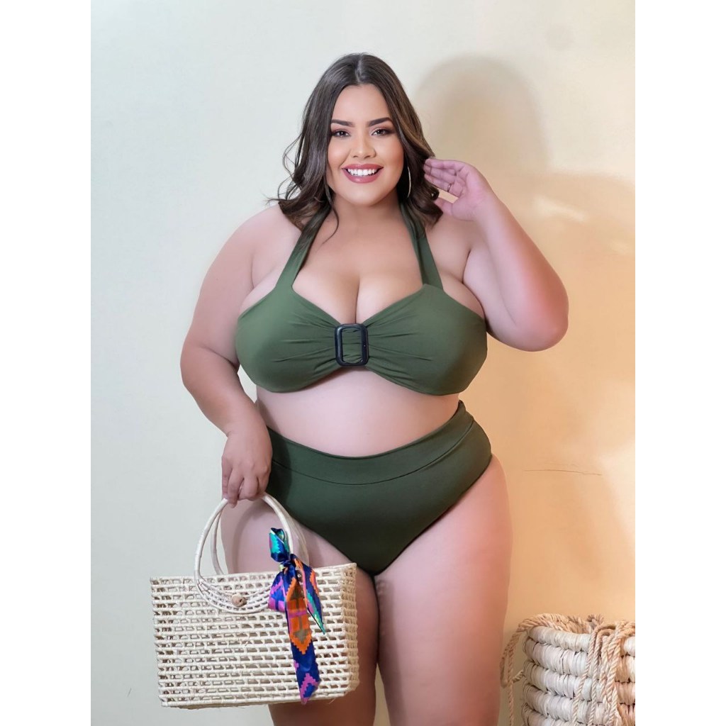 Biquini Plus Size Meia Taça Sustentação Calcinha Hot Pants Cintura Alta Plus Size Para Gordinhas Conjunto de Biquini Praia Piscina