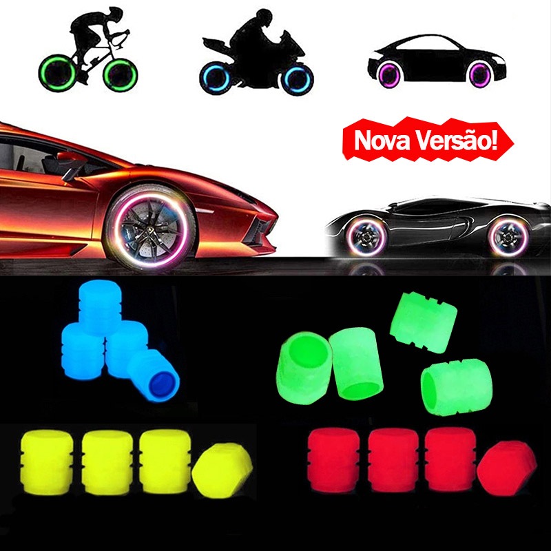 Kit 4 Tampinhas De Valvula Tampa Bico Câmara De Ar Pneu Bicicleta Carro Moto