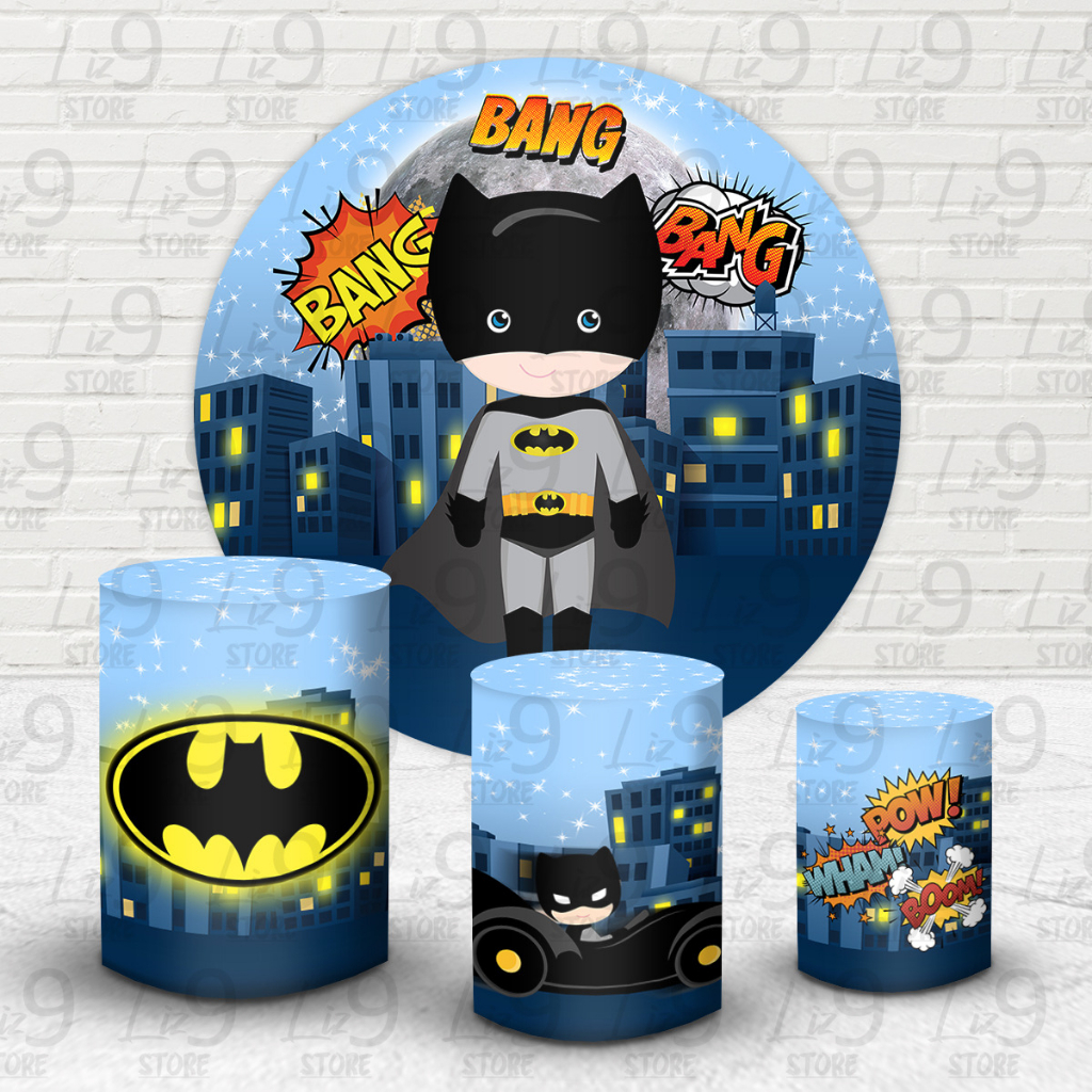 Kit Painel Redondo Sublimado Batman 1,50M + Trio Capas de Cilindro C/Elastico Veste Facil