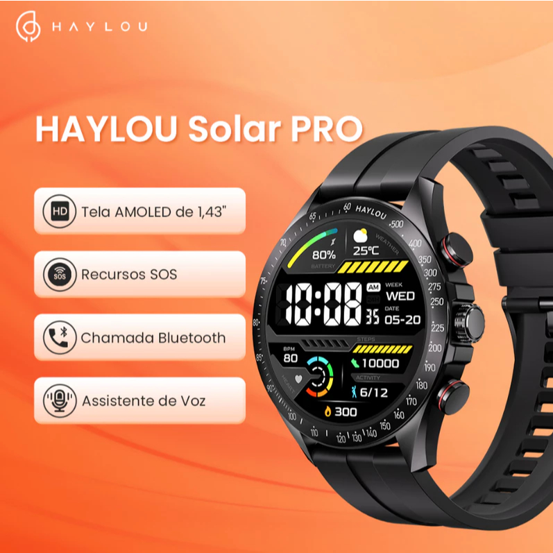 HAYLOU Solar Pro Relogio Smartwatch BT5.3 Bluetooth Chamadas telefônicas Smartwatch para Masculino e Feminino Tela AMOLED de 1,43"