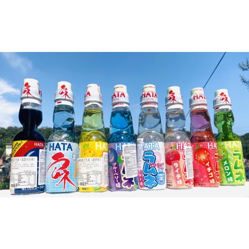 Hata Ramune Bebida Gaiseficada Estilo Refrigerante Japonês Diversos sabores Flor de Sakur,Lichia, Bluberry,yorgute,cola, Morango, laranja,toranja 200ml