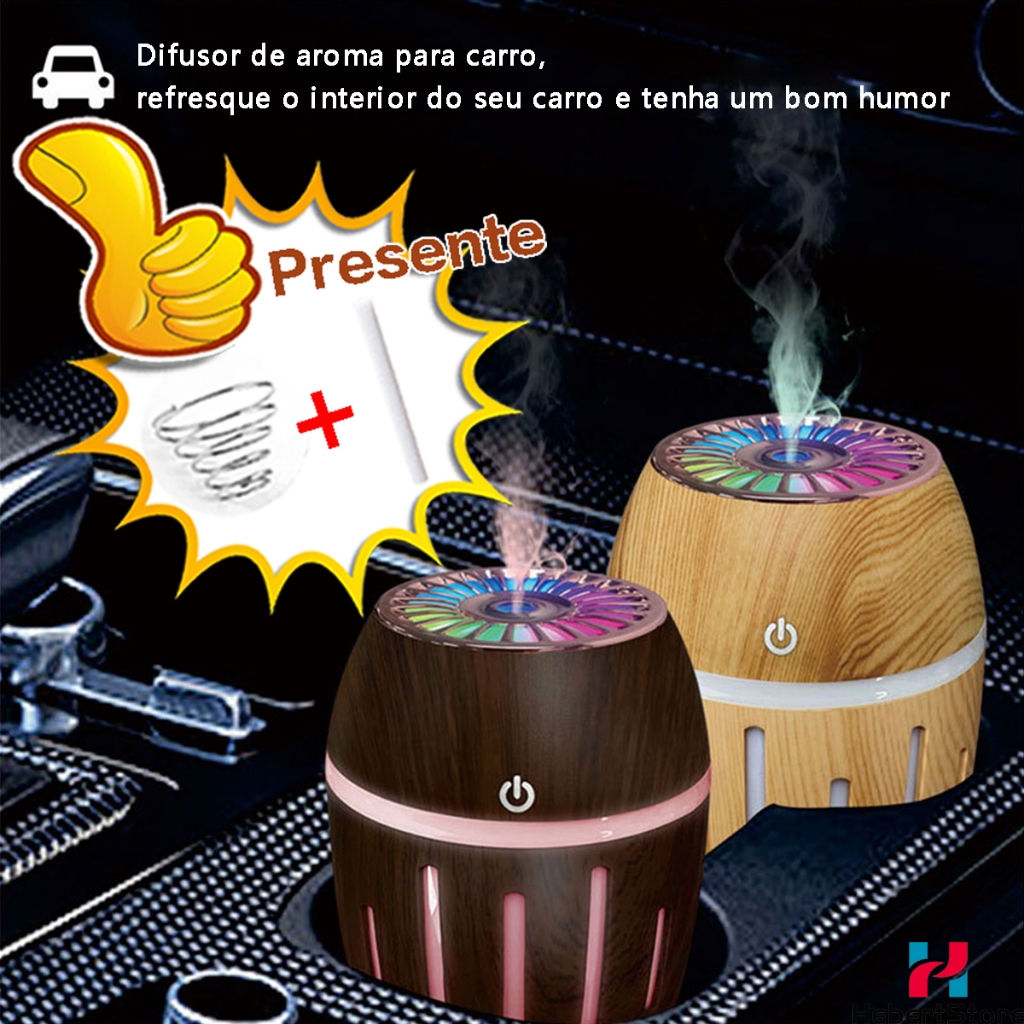 Mini Umidificador De Ar E Difusor Aromatizador De Ambiente 300ml Madeira Ultrassônico Com Led Para Carro Quarto Infantil Banheiro Sala Casa UM021
