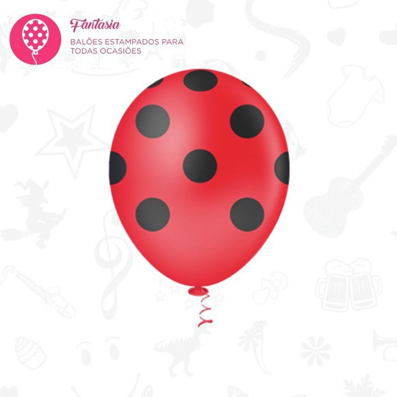 Pacote 25 Balões Vermelho c/ Bolinhas Preta Poá Nº 10 Pic Pic