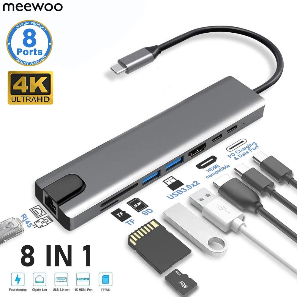 Usb C Hub (8 Em 1) Para Rj45 Leitor De Cartões Sd/Tf 2.0 3.0 Porta HDMI Pd Estação De Ancoragem Macbook